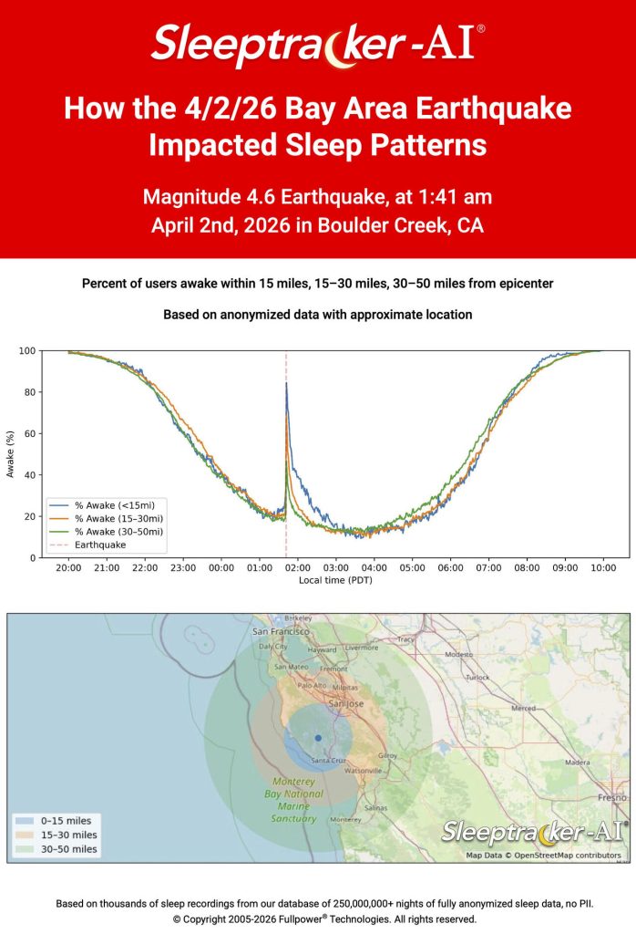 The April 2 earthquake near Boulder Creek served as a compelling natural experiment for the Fullpower® Sleeptracker-AI® platform, offering a high-resolution look at how seismic events disrupt human rest.